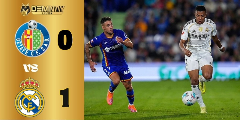 Vòng đấu thứ 9 - giải VĐQG Tây Ban Nha,Real Madrid làm khách trên sân của Getafe. Mặc dù được đánh giá vượt trội đối thủ về đẳng cấp nhưng “Kền kền trắng” vấp phải sự kháng cự rất quyết liệt. Mãi đến phút 80,siêu sao Kylian Mbappe mới ghi được bàn,ấn định chiến thắng 1-0 cho đoàn quân của HLV Xabi Alonso.